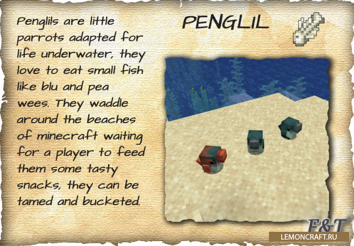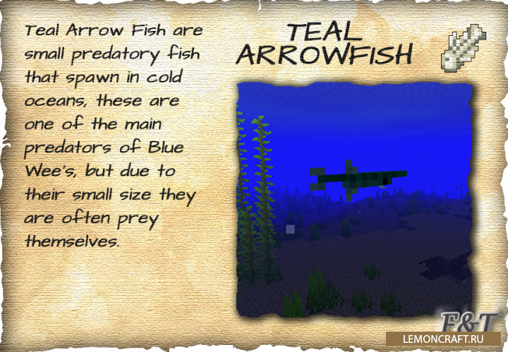 Мод на прикольных мобов Fins and Tails разнообразит игру различными интересными мобами, среди которых можно будет встретить и обычных рыбок и странных крабов. В мод уже добавлено более 30 новых существ и по заверению автором мода это еще не конец.